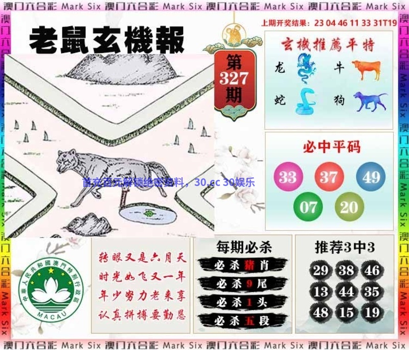 | 325期⑩码:20.08.05.04.11.03.07.26.30.09 |